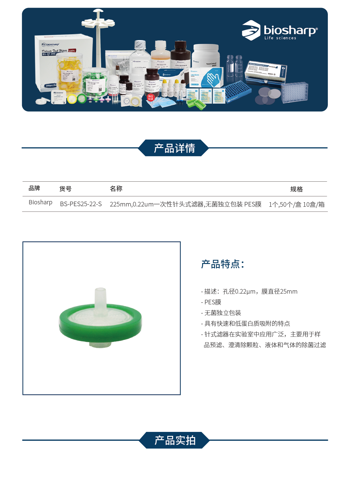 25mm,0.22um一次性针头式滤器,无菌独立包装,PES膜