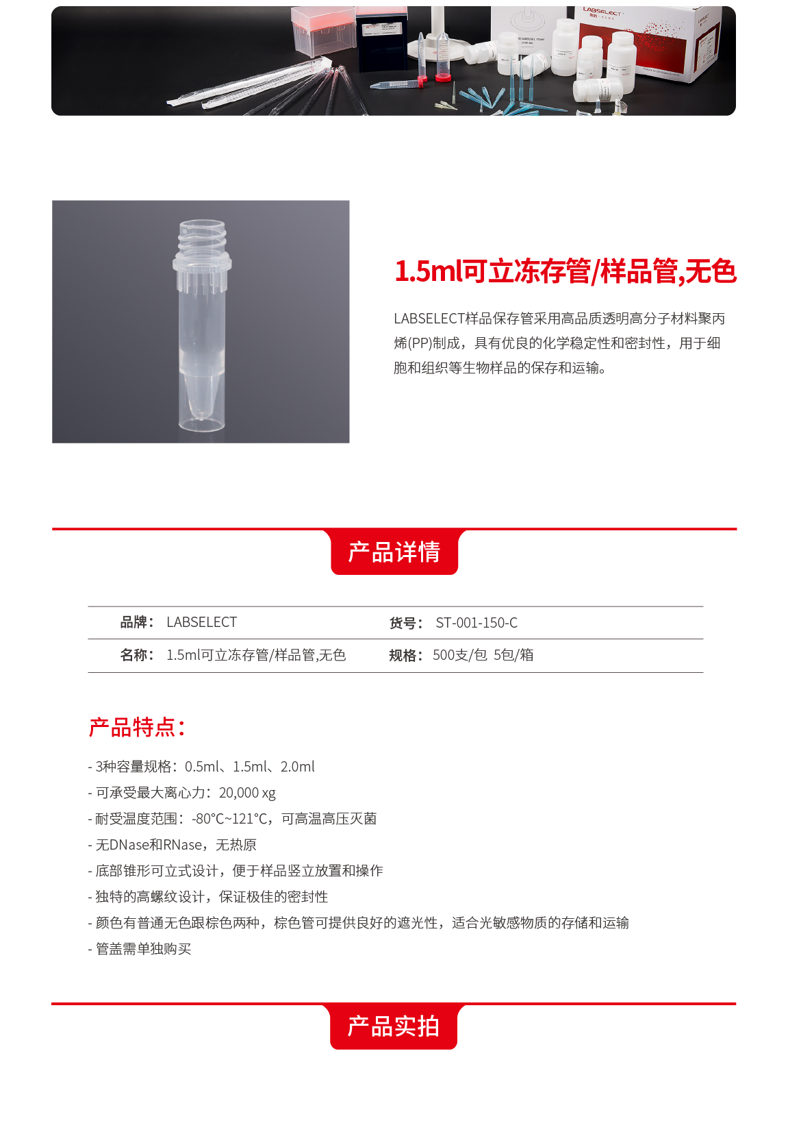 1.5ml可立冻存管/样品管,无色