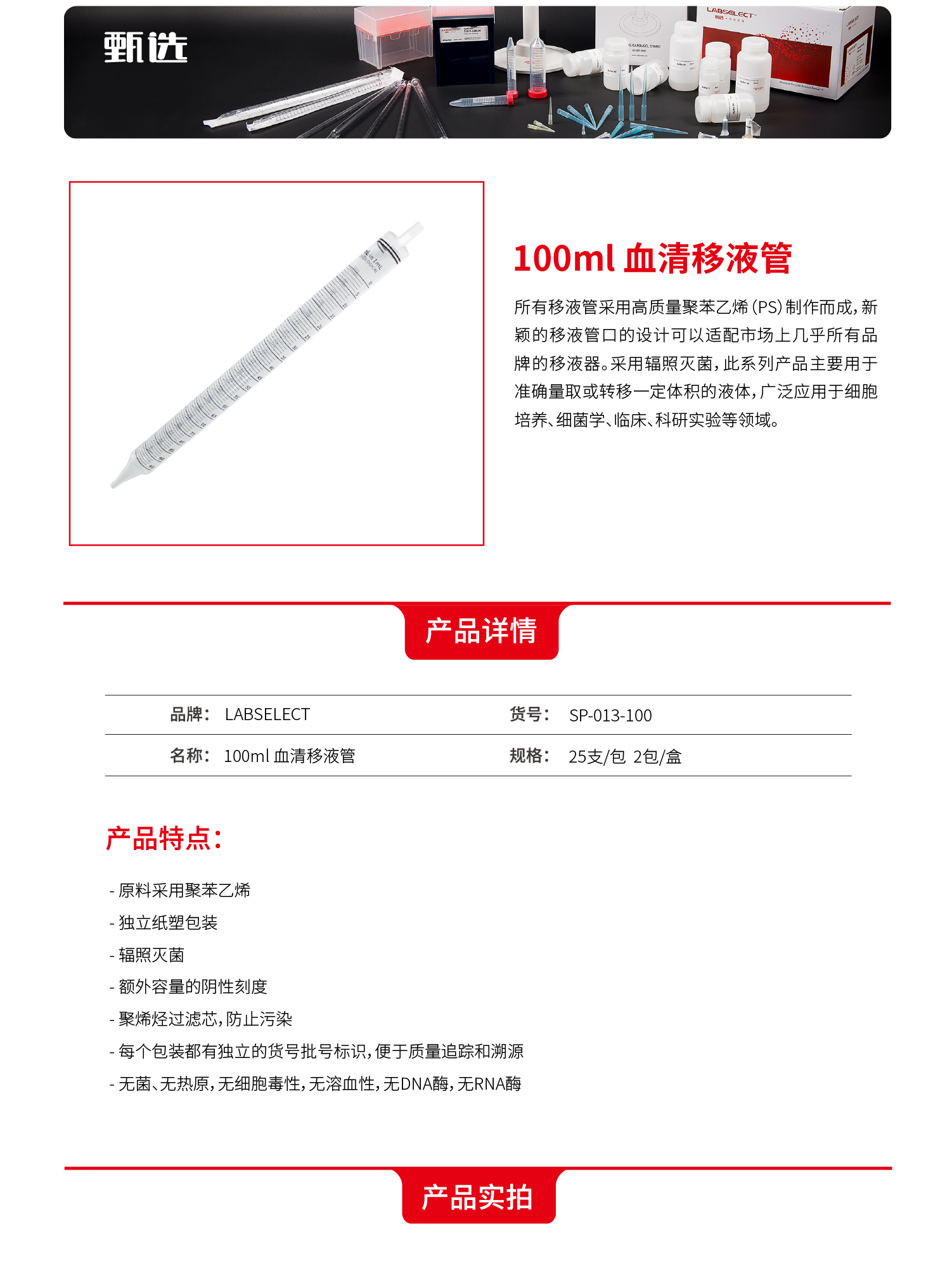 100ml血清移液管